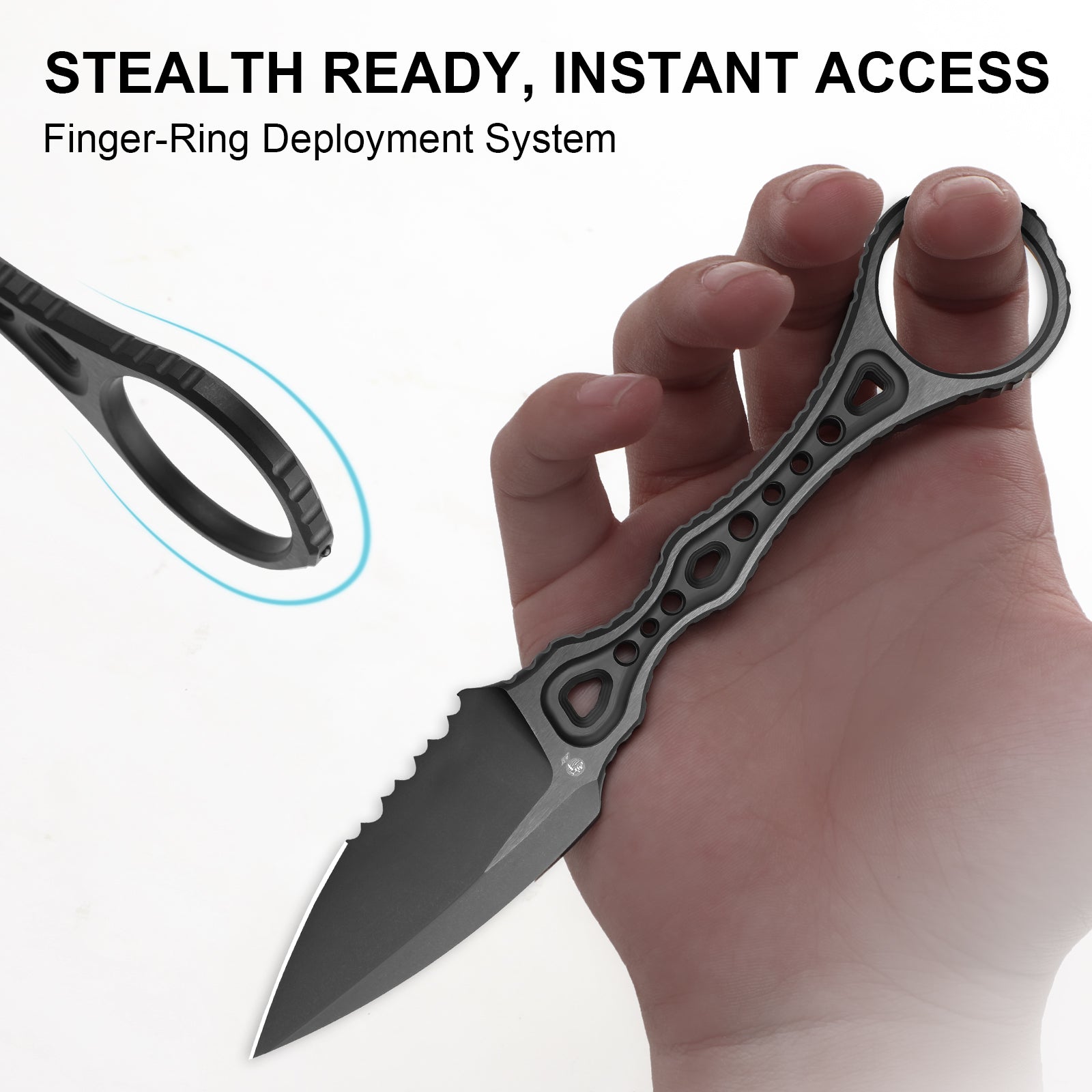 The finger-ring system enables swift one-handed deployment from concealed positions (e.g., inside waistband). Weighs under 2.15 oz, it disappears in carry yet responds instantly when needed.